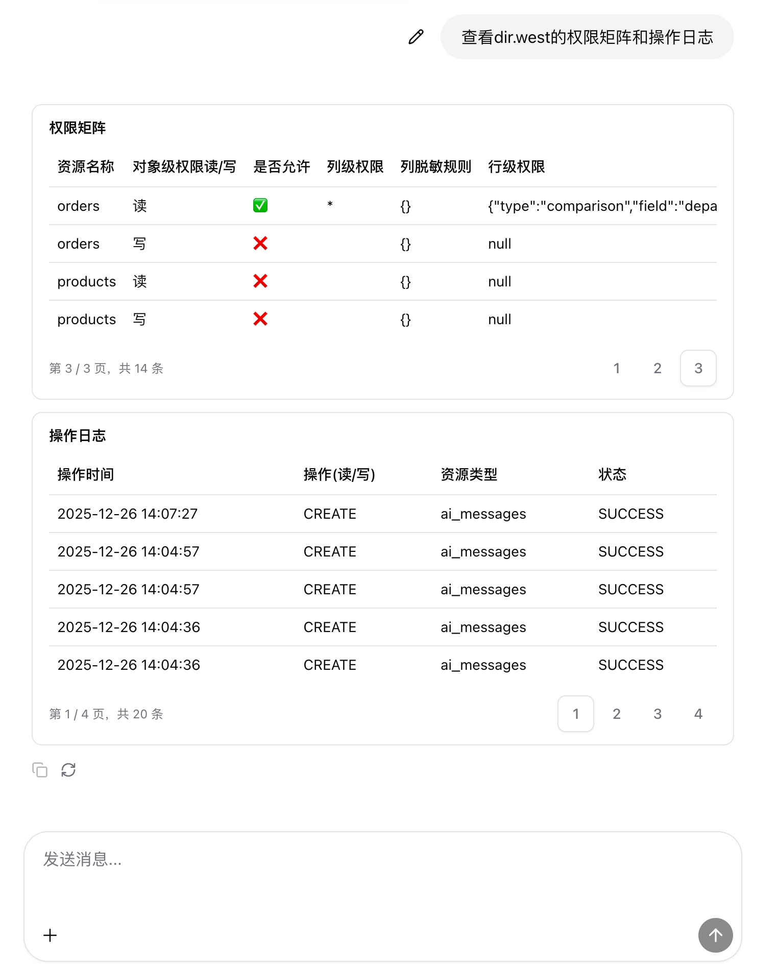 - 「查看 dir.west 的权限矩阵和操作日志」
